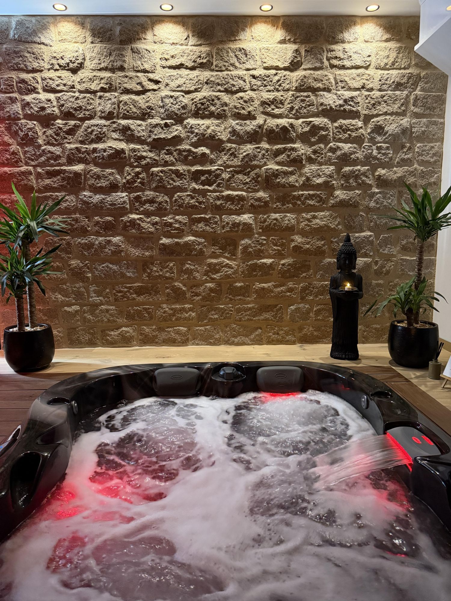 Dans notre espace détente, vous pourrez profiter en amoureux de tous les atouts du spa privatif.